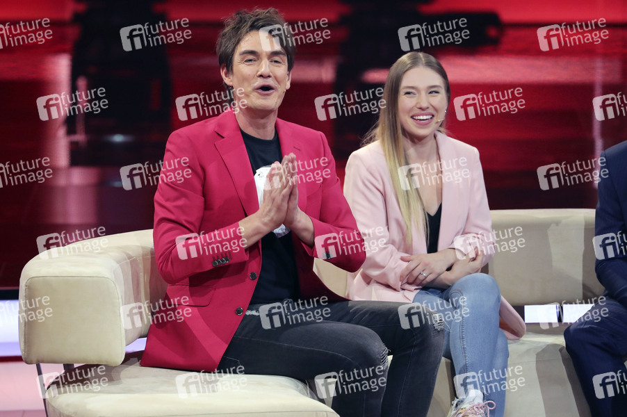 Matze Knop und Bianca Claßen bei der Aufzeichnung der ARD-Unterhaltungsshow 'Verstehen Sie Spass?' in den Bavaria Studios. Geiselgasteig bei München, 03.04.2019