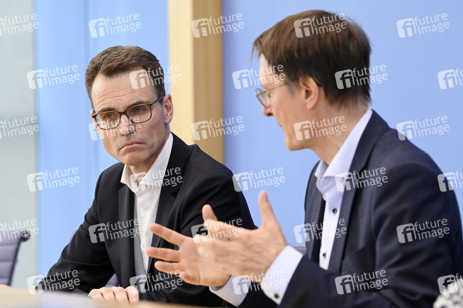 Stephan Baldus und Karl Lauterbach bei der Bundespressekonferenz Gesundes-Herz-Gesetz im Haus der Bundespressekonferenz. Berlin, 28.08.2024