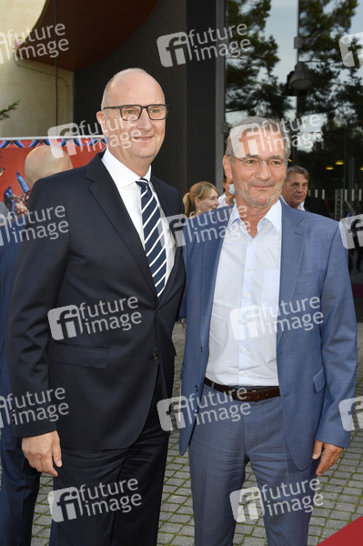 Dietmar Woidke und Matthias Platzeck bei der Eröffnung des 27. Jüdischen Filmfestivals Berlin & Brandenburg im Hans Otto Theater. Potsdam, 12.08.2021