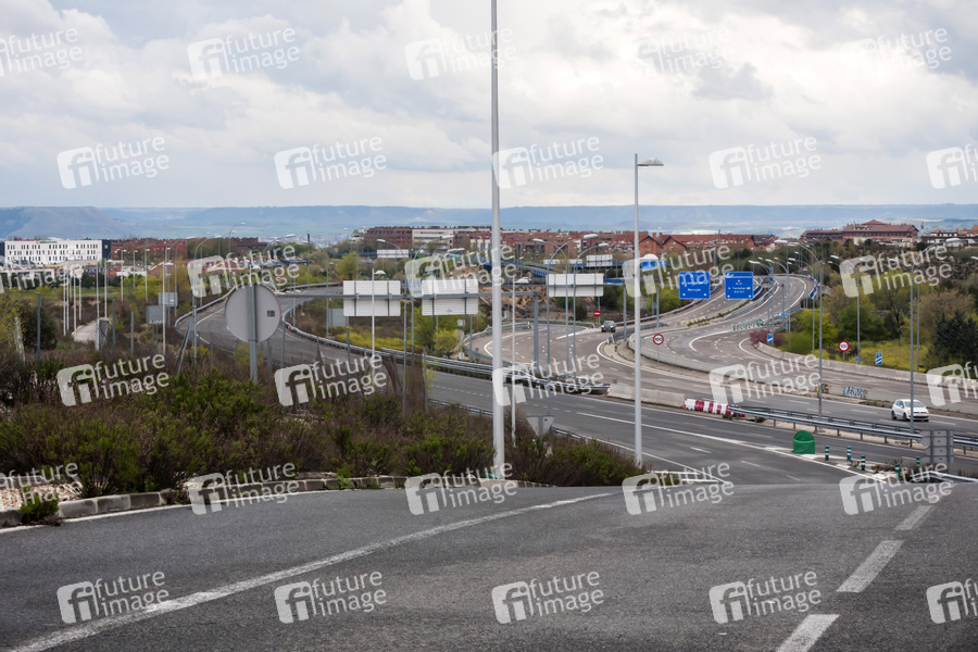 Leere Straßen am Tag 17, nachdem die spanische Regierung den Ausnahmezustand wegen des Coronavirus COVID-19 erklärt hat. Die Bevölkerung steht vorerst bis zum 11. April Tage zu Hause unter Quarantäne. Die spanische Polizei und Armee überprüfen Menschen, die durch die Straßen gehen. Erlaubt sind Gänge in Krankenhaus, in Supermärkte, Kioske und Apotheken, sowie das Ausführen von Haustieren und der Weg zur Arbeit. Madrid, 01.04.2020