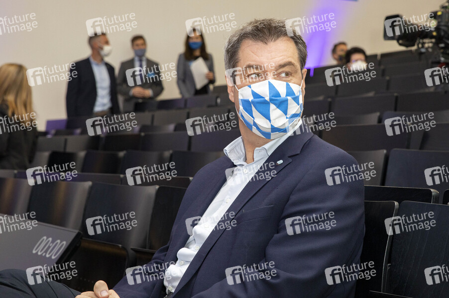 Markus Söder beim Hightech Summit zum Thema 'KI und Supertech für den Menschen' in der Otto-Friedrich-Universität. Bamberg, 05.10.2020