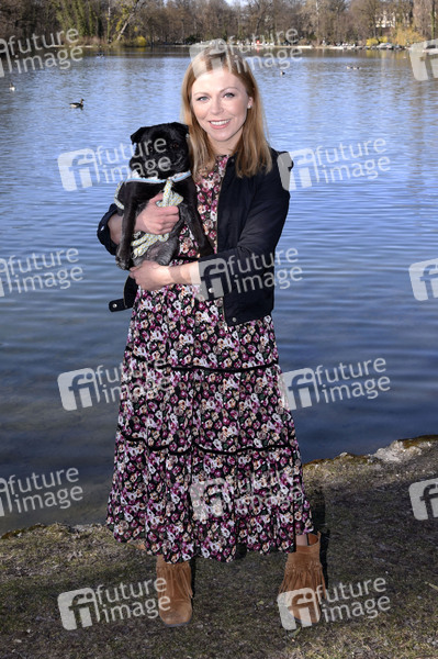 Anna Ewelina beim Spaziergang mit Hund Resi am Kleinhesseloher See im Englischen Garten. München, 28. 03.2021