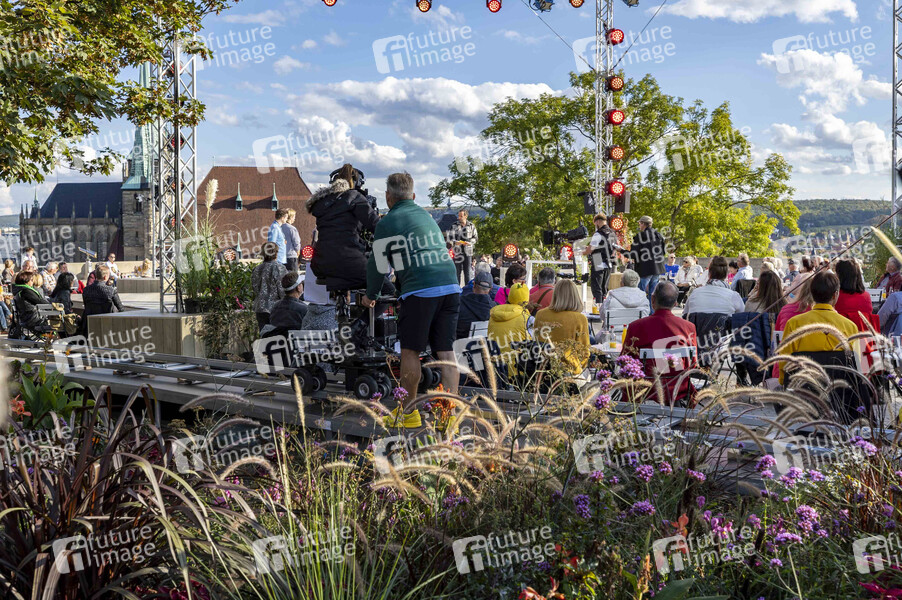 Produktion des 'ZDF-Fernsehgarten on Tour' auf dem Petersberg während er Vorbereitungen zum Tag der Deutschen Einheit unter dem Motto 'Zusammen wachsen'. Erfurt, 30.09.2022