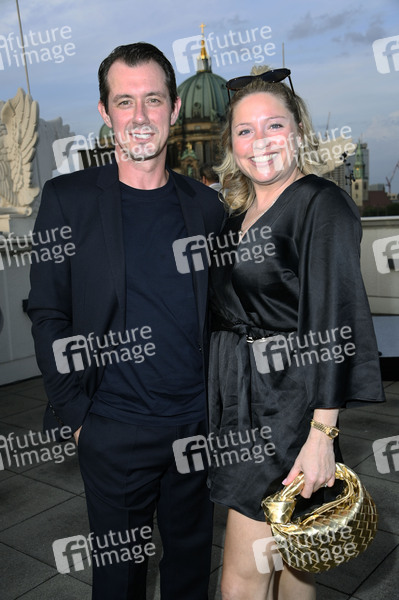 Caroline Frier mit Begleitung beim Eröffnungsempfang der UFA Filmnächte 2025 auf der Dachterrasse der Bertelsmann Repräsentanz. Berlin, 27.08.2025