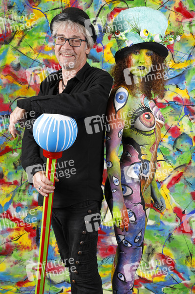 Das World Bodypaiting Festival 2020 fand aufgrund der Corona-Pandemie online statt. Unter dem vorgegebenen Motto 'Psychedelic Circus' verwandelte BodyArt-Künstler Jörg Düsterwald sein Model Lena in einen psychedelischen Mad Hatter. Hameln, 10.07.2020