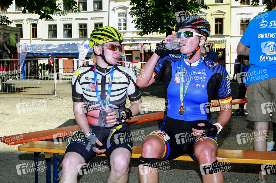 Claudia Pechstein mit Schwester Sabine beim 16. Europamarathon Görlitz - Zgorzelec 2019. Görlitz, 02.06.2019