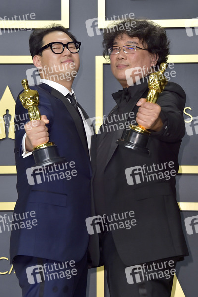 Han Jin-won und Bong Joon-ho (beste Autoren des Originaldrehbuchs für 'Parasite') im Press Room der Oscar Verleihung 2020 / 92nd Annual Academy Awards im Hollywood & Highland Center. Los Angeles, 09.02.2020