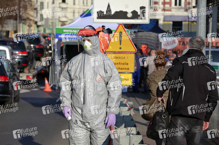 Virus, Viren, Corona, Sars-CoV-2, Covid-19, Coronavirus, Coronaviren, Corona-Virus, Corona-Viren, Ansteckung, Ansteckungsgefahr, Epidemie, Pandemie, Infektion, Infektionen, Infektion, Lungenkrankheit, Schutzmaske, Schutzanzug, Polen, SARS-CoV-2, Covid-19, Grenzübergang, Abschottung, Vorbeugung, Prävention, schützen, Schutz
