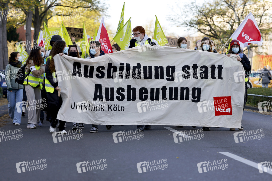 Verdi kündigt im Tarifstreit Warnstreiks an mehreren Unikliniken in NRW an. In Köln legten die Beschäftigten der Uniklinik Köln die arbeit nieder und protestierten für höhere Löhne besonders im Pflegebereich. Köln, 09.11.2021