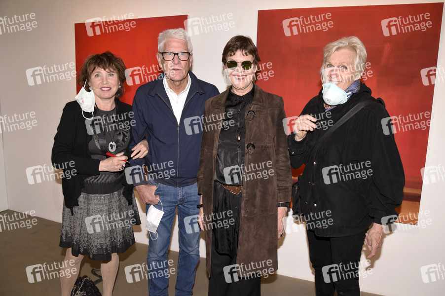 Dunja Siegel, Bernd Zimmer, Cornelia Rieger und Magdalena Jetelova bei der Vernissage zur Ausstellung 'Terranaut. Malerei - Die Idee Stoa169' in der Galerie Jahn Pfefferle. München, 10.06.2020
