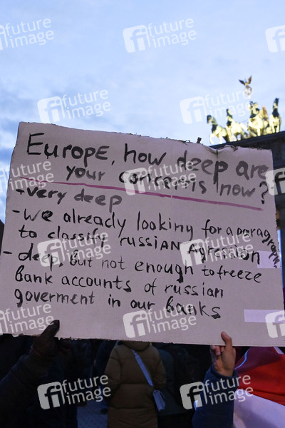 Kundgebung unter dem Motto 'Stoppt Putin, stoppt den Krieg' am Brandenburger Tor. Berlin, 24.02.2022