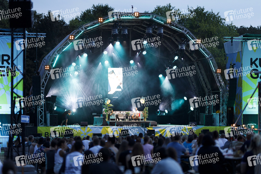 Oliver Pocher mit Ehefrau Amira Pocher mit dem Programm 'Die Pochers hier!' live im Kulturgarten in der Bonner Rheinaue. Das Bonn Live Kulturgarten Open Air Festival 2020 ist Europas erstes Open Air Festival unter Corona-Auflagen wegen der Covid-19 Pandemie. Bonn, 09.08.2020