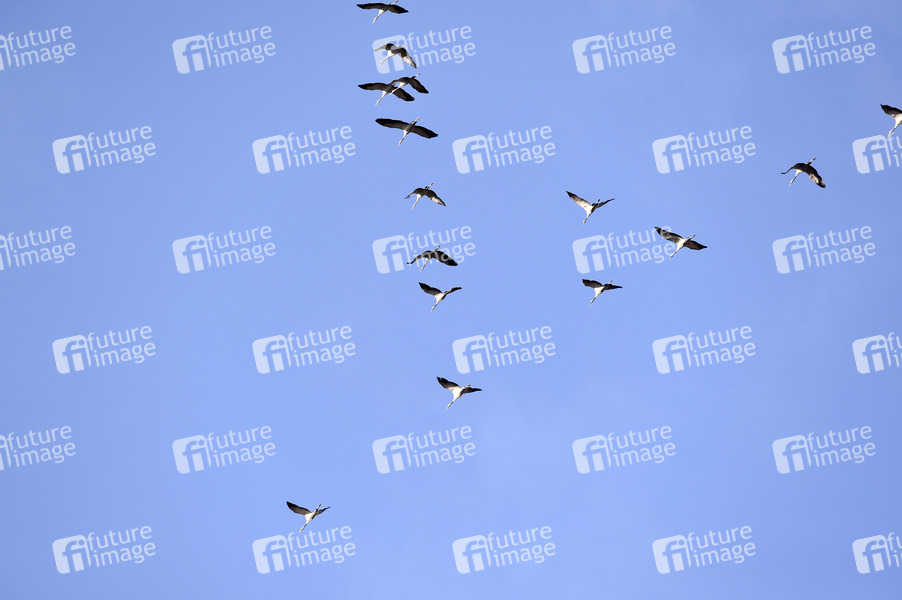 Vögel, Zugvögel, Vogelschwarm, Schwarm, Winter, Überwintern, Kraniche, Kranich, Ende des Sommers, Winterzeit, Winteranfang, innere Uhr, innerer Kompass, Zugverhalten, Ornithologie, Zugvogel, Instinkt, Schwarmintelligenz, Flugstrecke, Flugroute, Winterquartier, Vogelbeobachtung, Erdmagnetfeld, Symbolbild, Symbolfoto