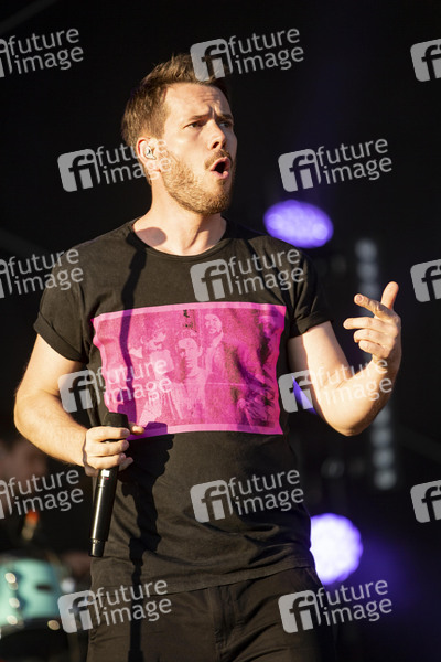 Johannes Strate von Revolverheld live bei einem Autokonzert an der Messe. Erfurt, 21.05.2020