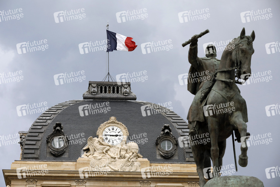 Ecole Militaire, Militärschule, französische Flagge, Militär, Ausbildung, französische Armee, Reiterdenkmal, Statue, General Joffre, Tourismus, Touristen, Sightseeing, Stadt der Liebe, Wahrzeichen, Architektur, Sommer in Paris, Reiseziel, Frankreich, Kultur, Geschichte