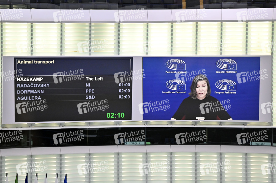 Anja Hazekamp bei einer Plenartagung über den Schutz von Tieren beim Transport im Plenarsaal des Europäischen Parlaments. Straßburg, 20.01.2022