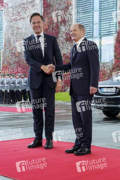 Mark Rutte und Olaf Scholz beim Empfang des NATO-Generalsekretärs mit militärischen Ehren und zu einem gemeinsamen Gespräch mit anschließendem Pressestatement im Bundeskanzleramt. Berlin, 04.11.2024
