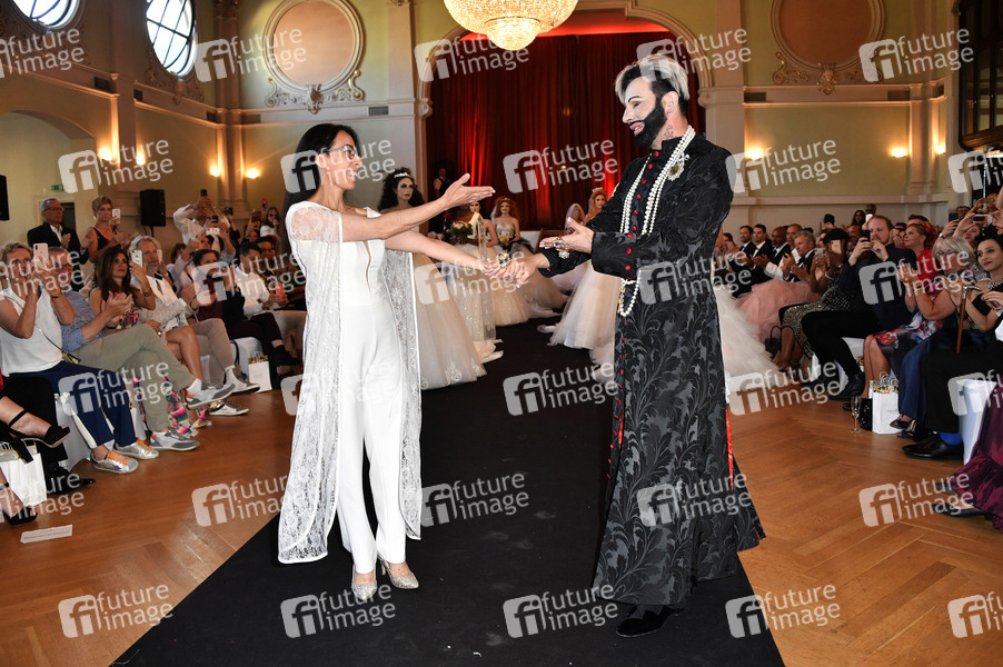 Semiha Bähr und Harald Glööckler bei der Präsentation der Brautmodenkollektion Pompöös by Semiha Bähr im Ballhaus Pankow. Berlin, 28.06.2019
