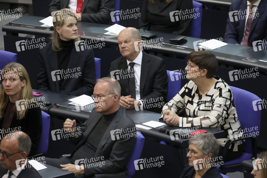 Olaf Scholz und Saskia Esken bei der Gedenkstunde im Bundestag zum 80. Jahrestag des Endes des Zweiten Weltkrieges. Berlin, 08.05.2025
