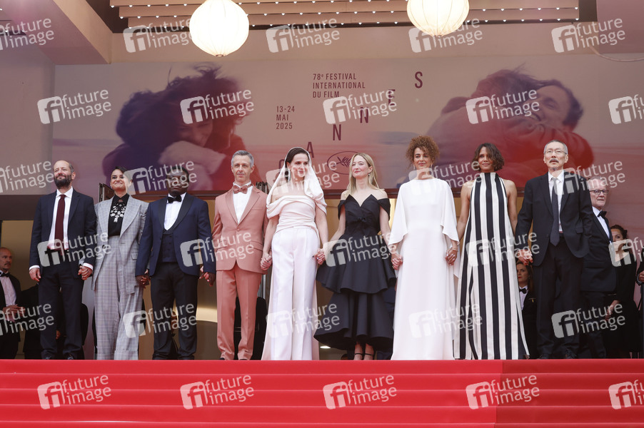 Carlos Reygadas, Payal Kapadia, Dieudo Hamadi, Jeremy Strong, Juliette Binoche, Alba Rohrwacher, Leila Slimani, Halle Berry und Hong Sang-soo bei der Opening Ceremony mit der Premiere des Kinofilms 'Partir un jour / Leave One Day' auf dem Festival de Cannes 2025 / 78. Internationale Filmfestspiele von Cannes im Palais des Festivals. Cannes, 13.05.2025