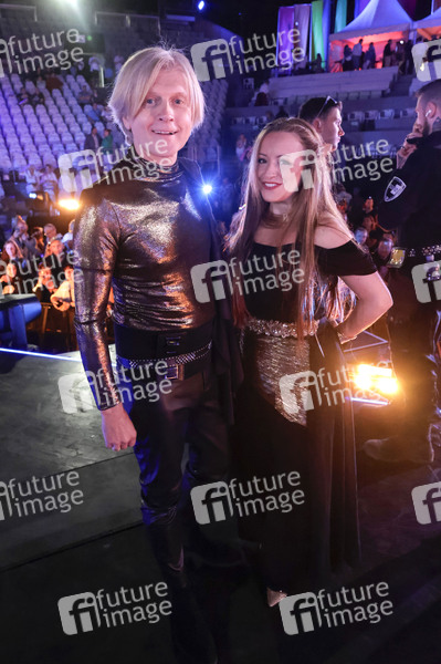 John Michael Kelly und Maite Itoiz in der TV-Show 'Schlagerbooom Open Air 2025 - Die Berge leuchten!' live aus dem Stadion Kitzbühel. Kitzbühel, 21.06.2025