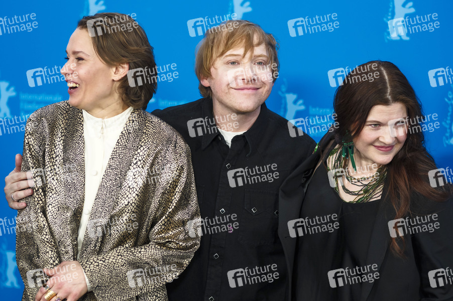 Seidi Haarla, Rupert Grint und Hanna Bergholm beim Photocall zum Kinofilm 'Yön lapsi / Nightborn' auf der Berlinale 2026 / 76. Internationale Filmfestspiele Berlin im Hotel Grand Hyatt. Berlin, 14.02.2026