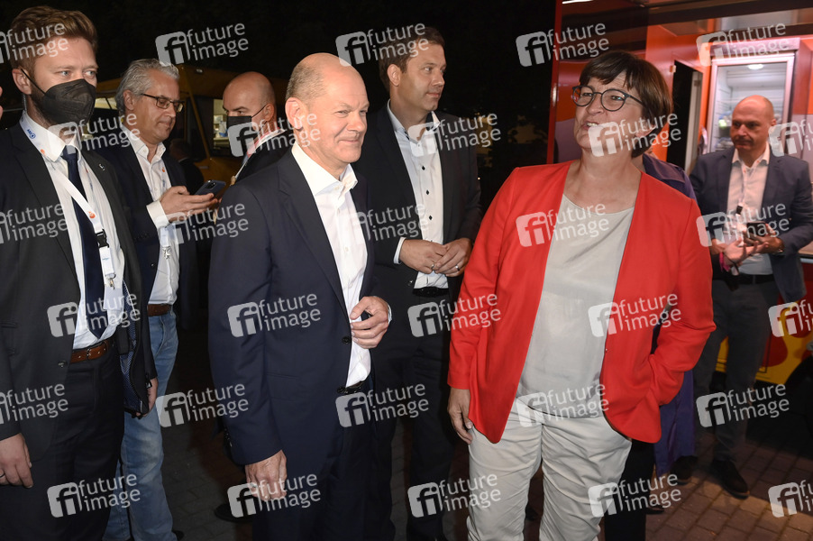 Olaf Scholz und Saskia Esken beim 'Triell - Dreikampf ums Kanzleramt' von ARD und ZDF mit den Kanzlerkandidaten im Studio Berlin-Adlershof. Berlin, 12.09.2021