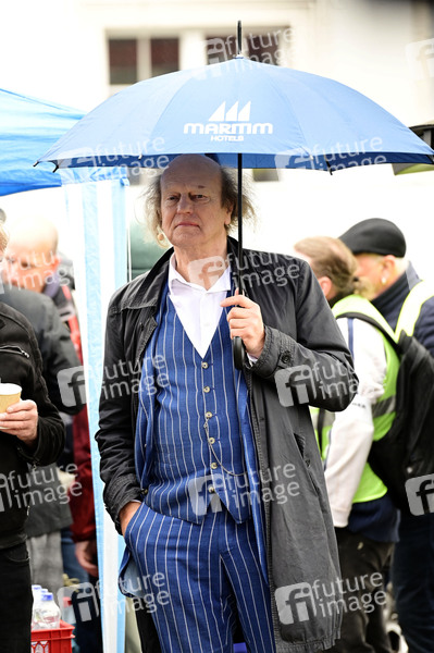 Arnulf Rating bei einer 'Friedensprozession' am Karfreitag unter dem Motto 'Frieden kennt keine Brandmauern' auf dem Postplatz. Dresden, 18.04.2025
