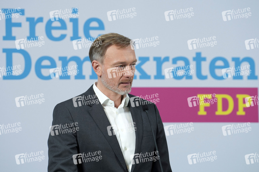 Christian Lindner bei der Presseskonferenz der FDP zur Vorstellung des neuen Generalsekretärs Marco Buschmann im Hans-Dietrich-Genscher-Haus. Berlin, 02.12.2024