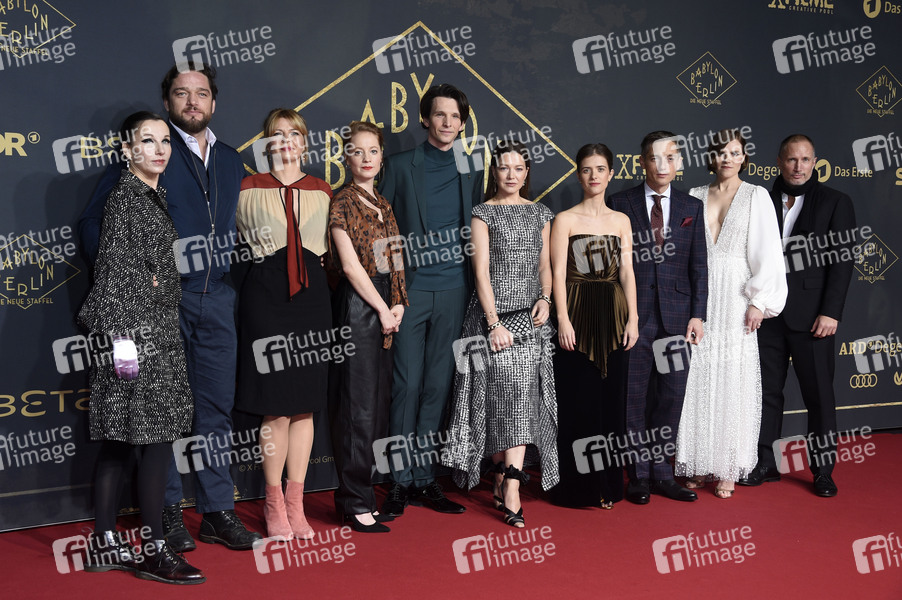 Meret Becker, Ronald Zehrfeld, Jördis Triebel, Leonie Benesch, Sabin Tambrea, Hannah Herzsprung, Liv Lisa Fries, Volker Bruch, Fritzi Haberlandt und Benno Fürmann bei der Premiere der 3. Staffel der Fernsehserie 'Babylon Berlin' im Zoo Palast. Berlin, 16.12.2019