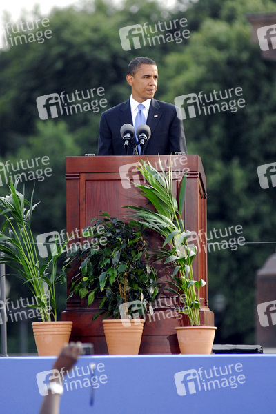 Barack Obama, der designierte Präsidentschaftskandidat der Demokraten, bei einer Rede an der Siegessäule. Berlin, 24.07.2008