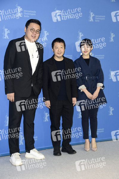 Wan Jia Huan , Zhangke Jia / Jia Zhang-ke und Zhu Weijie beim Photocall zu 'Yi zhi you dao hai shui bian lan / Swimming Out Till the Sea Turns Blue' auf der Berlinale 2020 / 70. Internationale Filmfestspiele Berlin im Hotel Grand Hyatt. Berlin, 22.02.2020