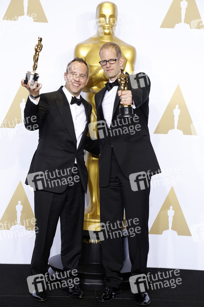 Jonas Rivera und Pete Docter (Bester Animationsfilm 'Alles steht Kopf / Inside Out') im Presseraum der Oscar Verleihung 2016 / 88th Academy Awards im Loews Hollywood Hotel. Los Angeles, 28.02.2016