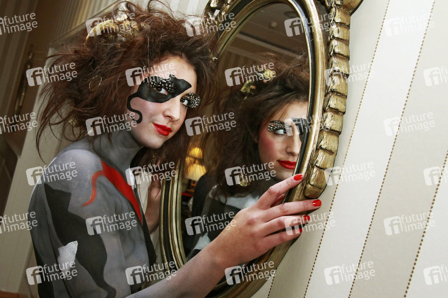Bodypainting, Erotik, Frau, Mädchen, nackt, drinnen, weiblich, Körperkunst, Kunst, Malerei, Spiegel, erotic, woman, girl, nude, indoor, female, body art, body painting, mirror