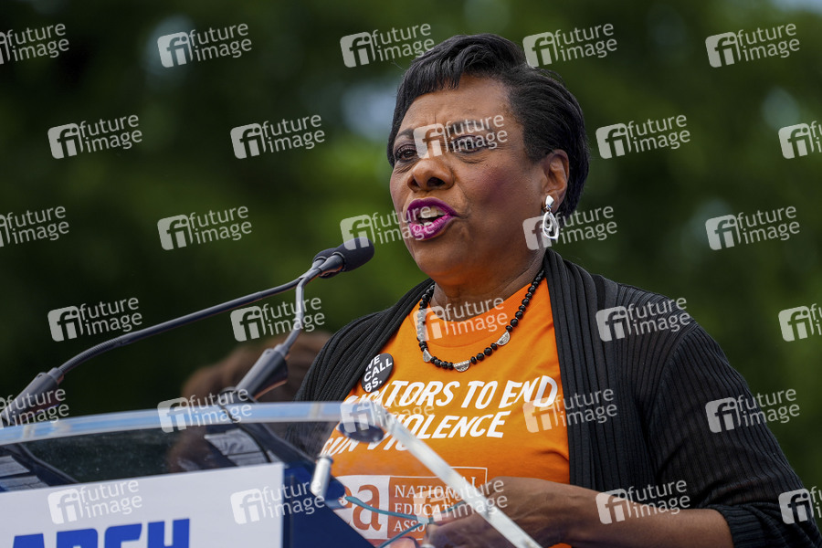 Rebecca S. Pringle, Präsidentin der National Education Association of the United States, spricht auf dem March for Our Lives. Tausende Menschen demonstrieren gegen die landesweite steigende Waffengewalt und fordern den Kongress auf, Schritte zu ihrer Beendigung zu unternehmen. March for Our Lives wurde von Überlebenden der Massenschießerei 2018 an einer High School in Parkland, Florida gegründet. Washington, 11.06.2022