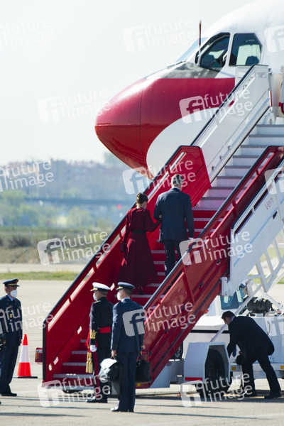 Königin Letizia von Spanien und König Felipe von Spanien beim Abflug der Royals zum Staatsbesuch zum Fürstentum Andorra am Staatsterminal T4 vom Flughafen Madrid-Barajas. Madrid, 25.03.2021