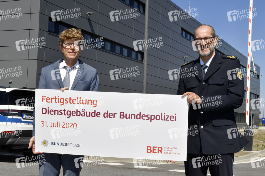 Engelbert Lütke Daldrup, Vorsitzender der Geschäftsführung der Flughafen Berlin Brandenburg GmbH, und Karl-Heinz Weidner, Präsident der Bundespolizeidirektion Berlin beim Fototermin anlässlich der Fertigstellung des Dienstgebäudes der Bundespolizei am Flughafen Berlin Brandenburg. Schönefeld, 31.07.2020