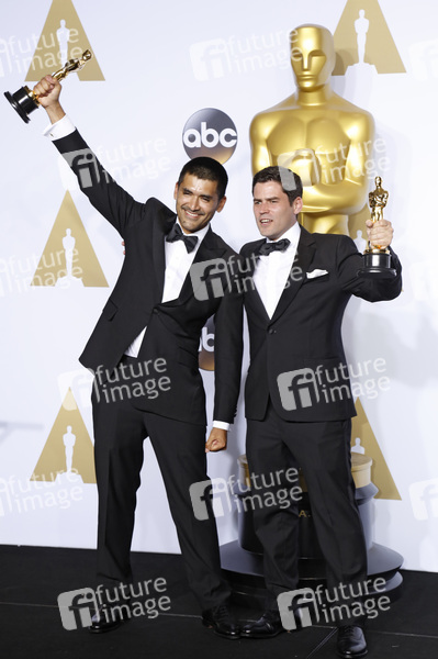 Gabriel Osorio Vargas und Pato Escala (Bester animierter Kurzfilm 'Bear Story') im Presseraum der Oscar Verleihung 2016 / 88th Academy Awards im Loews Hollywood Hotel. Los Angeles, 28.02.2016