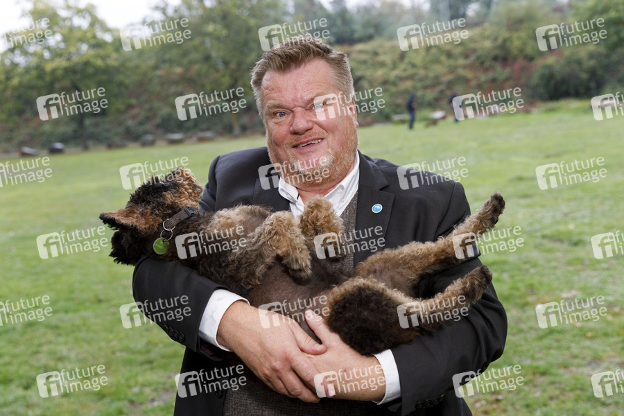 Thomas Schröder (Präsident Deutscher Tierschutzbund) mit Hund Erli, beim Pressetermin zur Charity-Initinative 'Tierisch engagiert' unterstützt von Fressnapf im Tierheim Köln-Zollstock. Für die ktion 'Freundschaft verbindet' hat Jana Ina Zarrella ein Freundschaftsarmband designt, dessen Erlöse direkt an den Tierschutz und in tiertherapeutische Einrichtungen fließt. Köln, 29.09.2020