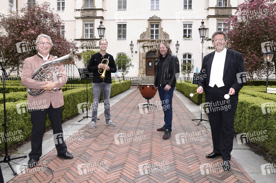 Ernst Hutter, Martin Hutter, Roland Hefter und Mark Mast bei der 'Paukenschlag gegen die Einsamkeit' Konzertveranstaltung der Josef-und-Luise-Kraft-Stiftung für Senioren im Mathildenstift. München, 01.05.2021