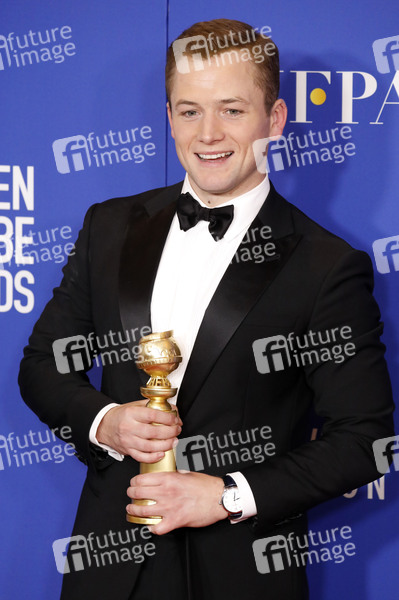 Taron Egerton mit dem Preis für den Besten Hauptdarsteller - Komödie oder Musical in 'Rocketman' bei der Verleihung der 77. Golden Globe Awards im Beverly Hilton Hotel. Beverly Hills, 05.01.2020