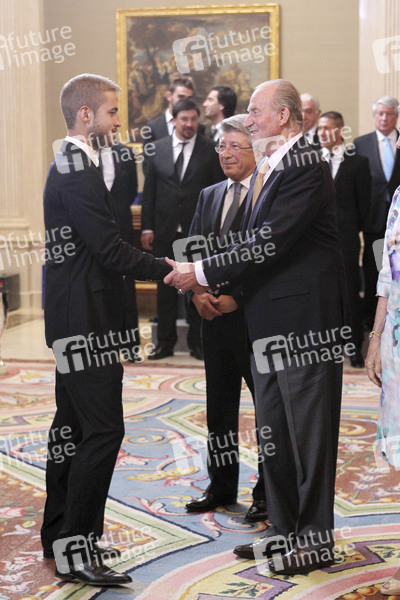 König Juan Carlos und Königin Sophia empfangen Spieler und Funktionäre von Atletio Madrid im Palacio de la Zarzuela, Madrid