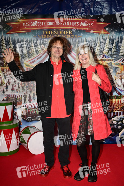 Kay Leo Leonhardt mit Partnerin Gaby Bachmann bei der Premiere des 27. Dresdner Weihnachts-Circus an der Washingtonstraße. Dresden, 13.12.2024