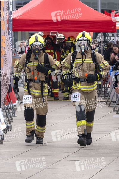 12. Firefighter Stairrun 2019 am Alexanderplatz - in vollter Schutzausrüstung laufen Feuerwehrmänner und Feuerwehrfrauen 36 Etagen auf das Dach des Park Inn Hotels. Berlin, 04.05.2024