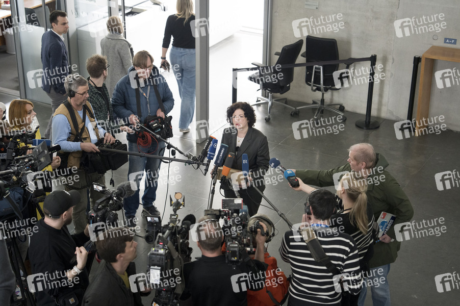 Amira Mohamed Ali übergibt Einspruch vom BSW gegen das amtliche Endergebnis der Bundestagswahl 2025 beim Wahlprüfungsausschuss im Paul-Löbe-Haus. Berlin, 23.04.2025