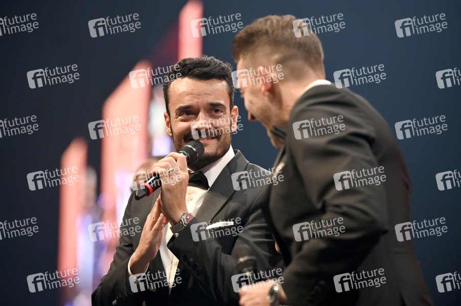 Giovanni Zarrella und Tom Marks von Vintage Vegas live beim 10. Ball der Unternehmer 2022 in Halle 3C der NürnbergMesse. Nürnberg, 15.10.202323