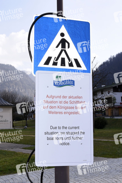 Die Ausgangsbeschränkungen und Maßnahmen der Bundesregierung zur Bekämpfung der Corona-Epidemie wirken auch am Königssee. Berchtesgaden, 29.03.2020