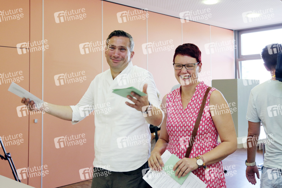 Martin Dulig und Ehefrau Susann gehen im Wahllokal Schulstrasse 3 wählen. Moritzburg, 01.09.2019