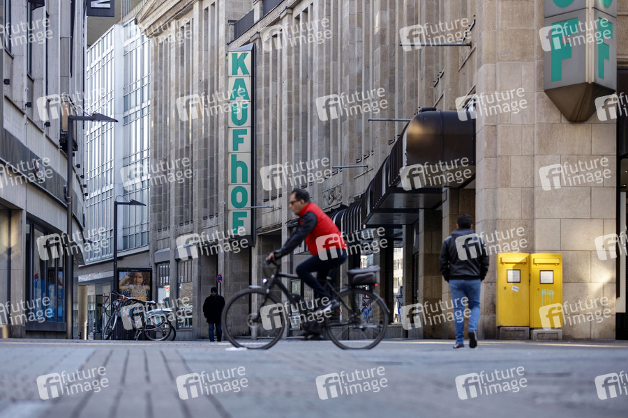 Eine Filiale des Konzerns Galeria Karstadt Kaufhof, die wegen der Coronakrise Mietzahlungen gestoppt hat und deren Generalbevollmächtigter Arndt Geiwitz Hilfskredite der KfW-Bank beanspruchen möchte, auf der Schildergasse. Köln, 04.04.2020