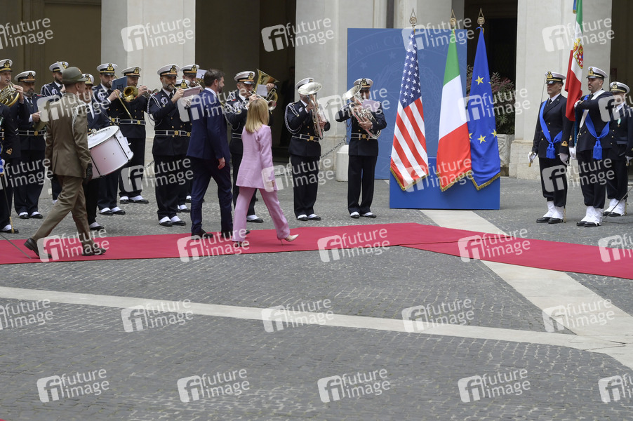 JD Vance und Giorgia Meloni beim Empfang des US-Vizepräsidenten im Palazzo Chigi. Rom, 18.04.2025